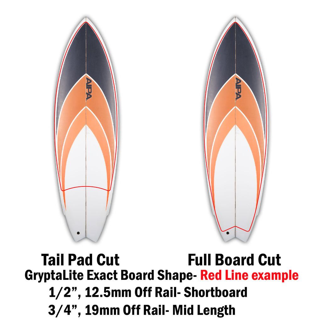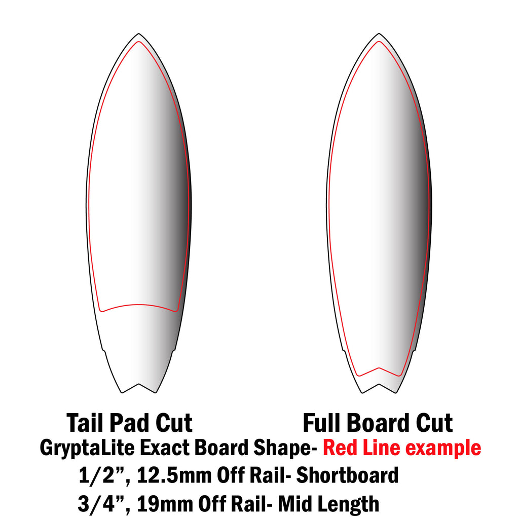 GryptaLite high performance traction has been engineered by surfers, for surfers, providing foot-board control you didn’t know was humanly possible. No more melted dirty, slippery heavy wax build up. GryptaLite’s technology is Water Reactive Traction (super grippy when wet), totally transparent, lighter than wax at 1/3 mm thin and performs perfectly in cold and warm water. Clear, Clean and Fast. Once and Done Right- Excellent Traction every surf, for the life of your board and clean ocean health. Made in USA.