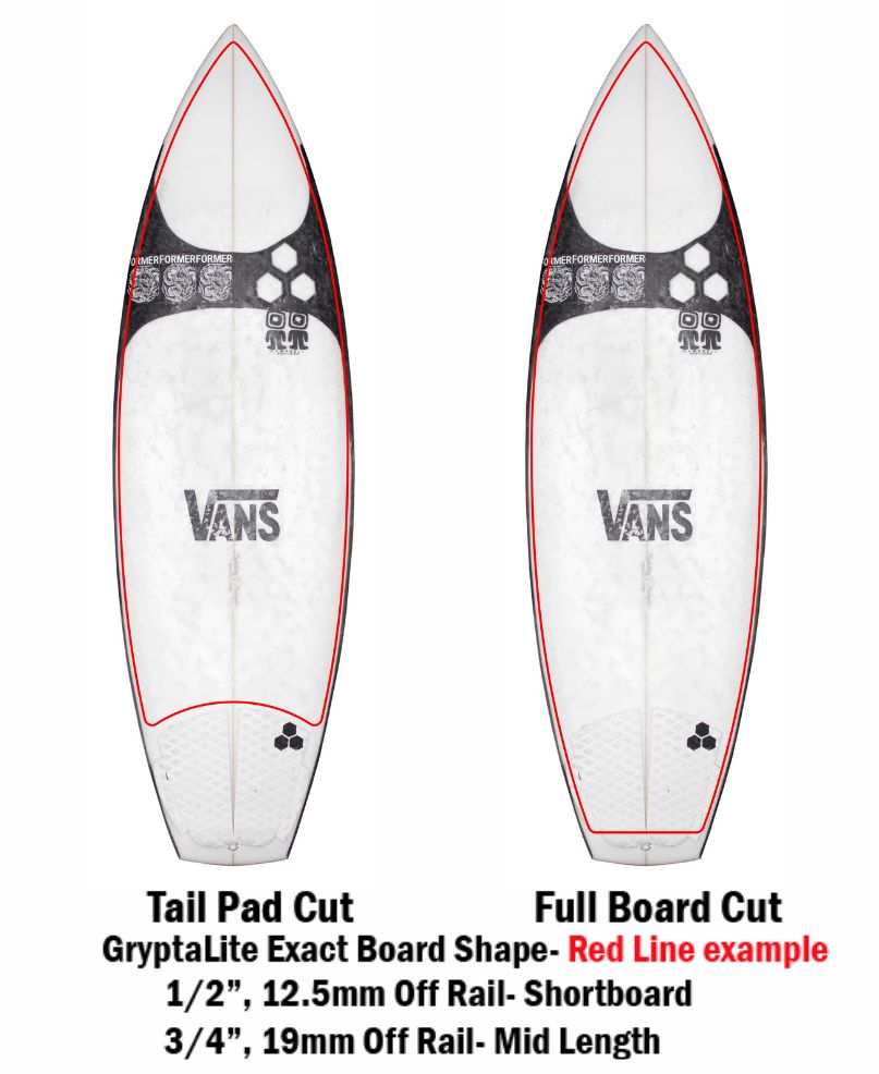 GryptaLite high performance traction has been engineered by surfers, for surfers, providing an exact board shape fit and foot-board control you didn’t know was humanly possible. No more melted dirty, slippery heavy wax build up. GryptaLite’s technology is Water Reactive Traction (super grippy when wet), totally transparent, soft, lighter than wax at 1/3 mm thin and performs perfectly in cold and warm water. Clear, Clean and Fast. Once and Done Right- Excellent Traction every surf, for the life of your board and clean ocean health. Made in USA.