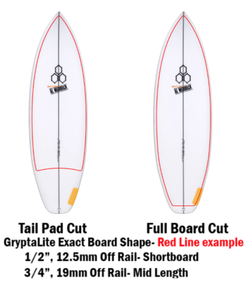 GryptaLite high performance traction has been engineered by surfers, for surfers, providing an exact board shape fit and foot-board control you didn’t know was humanly possible. No more melted dirty, slippery heavy wax build up. GryptaLite’s technology is Water Reactive Traction (super grippy when wet), totally transparent, soft, lighter than wax at 1/3 mm thin and performs perfectly in cold and warm water. Clear, Clean and Fast. Once and Done Right- Excellent Traction every surf, for the life of your board and clean ocean health. Made in USA.
