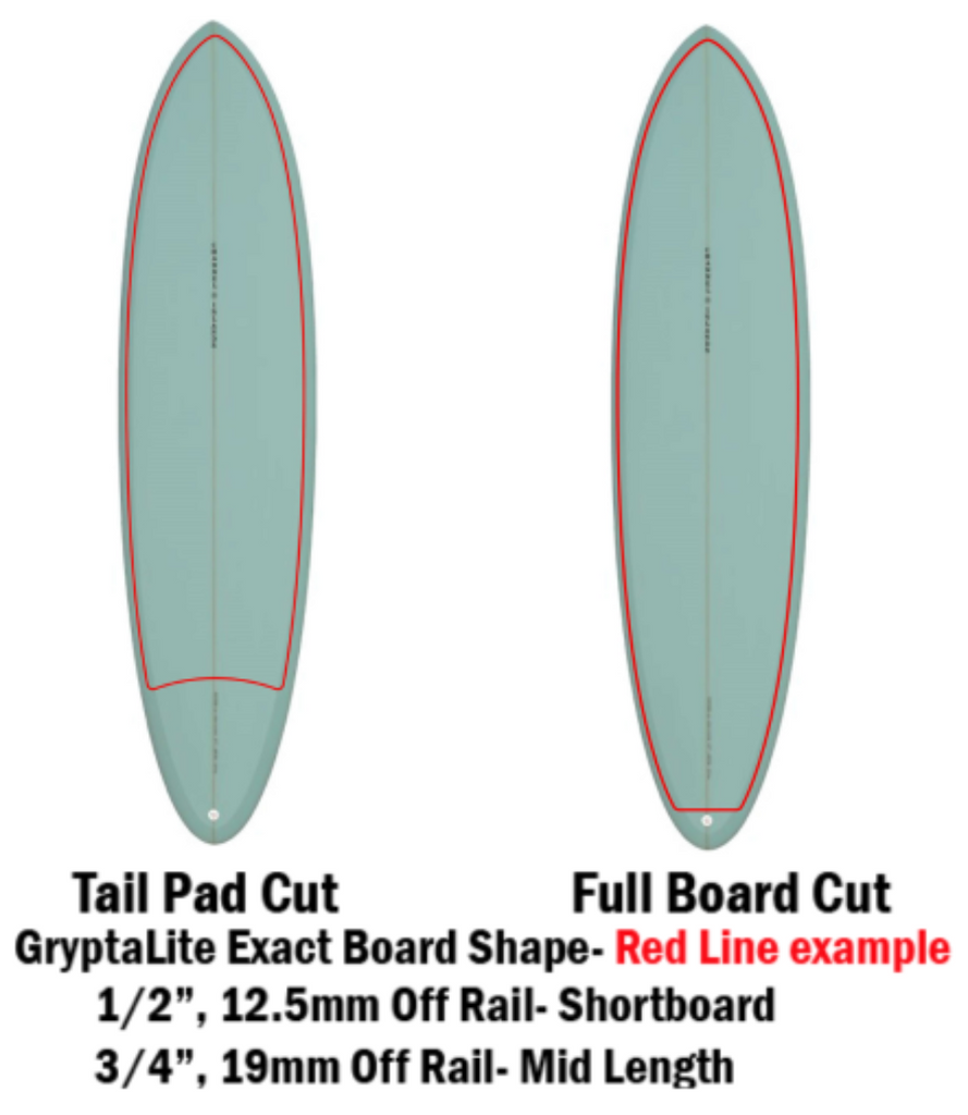 GryptaLite high performance traction has been engineered by surfers, for surfers, providing an exact board shape fit and foot-board control you didn’t know was humanly possible.  No more melted dirty, slippery heavy wax build up.  GryptaLite’s technology is Water Reactive Traction (super grippy when wet), totally transparent, soft, lighter than wax at 1/3 mm thin and performs perfectly in cold and warm water. Clear, Clean and Fast. Once and Done Right- Excellent Traction every surf, for the life of your board and clean ocean health.  Made in USA.