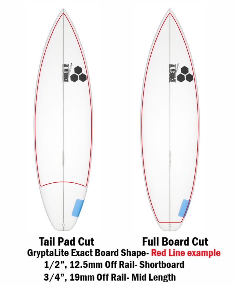 GryptaLite high performance traction has been engineered by surfers, for surfers, providing an exact board shape fit and foot-board control you didn’t know was humanly possible. No more melted dirty, slippery heavy wax build up. GryptaLite’s technology is Water Reactive Traction (super grippy when wet), totally transparent, soft, lighter than wax at 1/3 mm thin and performs perfectly in cold and warm water. Clear, Clean and Fast. Once and Done Right- Excellent Traction every surf, for the life of your board and clean ocean health. Made in USA.