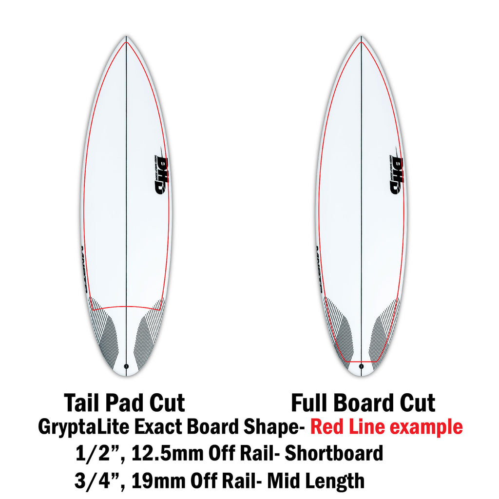 GryptaLite high performance traction has been engineered by surfers, for surfers, providing foot-board control you didn’t know was humanly possible. No more melted dirty, slippery heavy wax build up. GryptaLite’s technology is Water Reactive Traction (super grippy when wet), totally transparent, lighter than wax at 1/3 mm thin and performs perfectly in cold and warm water. Clear, Clean and Fast. Once and Done Right- Excellent Traction every surf, for the life of your board and clean ocean health. Made in USA.