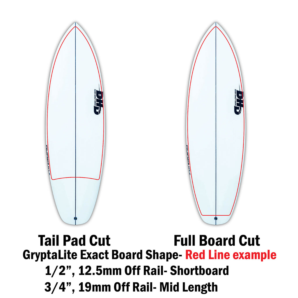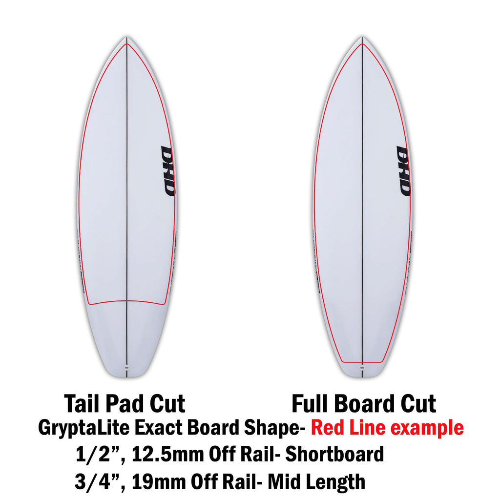 GryptaLite high performance traction has been engineered by surfers, for surfers, providing foot-board control you didn’t know was humanly possible.  No more melted dirty, slippery heavy wax build up.  GryptaLite’s technology is Water Reactive Traction (super grippy when wet), totally transparent, lighter than wax at 1/3 mm thin and performs perfectly in cold and warm water. Clear, Clean and Fast. Once and Done Right- Excellent Traction every surf, for the life of your board and clean ocean health.  Made in USA.
