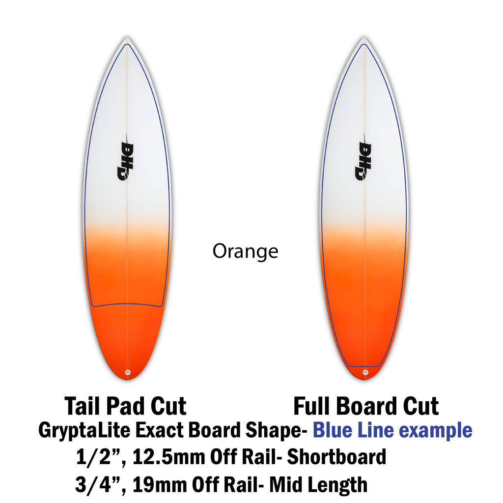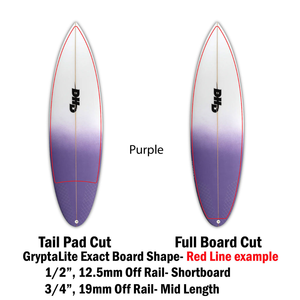 GryptaLite high performance traction has been engineered by surfers, for surfers, providing foot-board control you didn’t know was humanly possible. No more melted dirty, slippery heavy wax build up. GryptaLite’s technology is Water Reactive Traction (super grippy when wet), totally transparent, lighter than wax at 1/3 mm thin and performs perfectly in cold and warm water. Clear, Clean and Fast. Once and Done Right- Excellent Traction every surf, for the life of your board and clean ocean health. Made in USA.