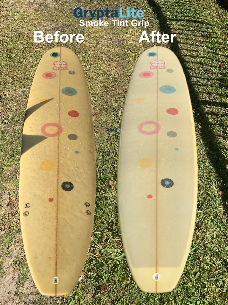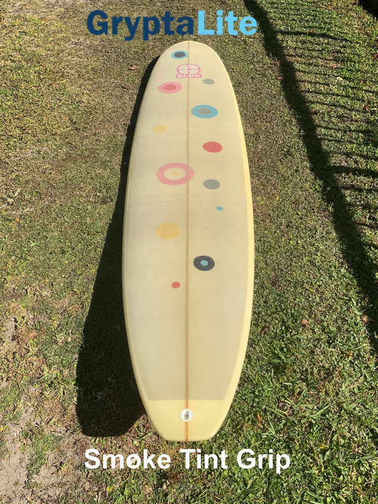 Gone are the days of heavy old melted wax and slipping off on perfect turns. GryptaLite high performance traction is engineered by surfers, for surfers, providing foot-board control you didn’t know was humanly possible. Pre-Cut 1 pc. the exact shape as your board, from a board pic.  GryptaLite’s technology is Water Reactive Traction (super grippy when wet), totally transparent, lighter than wax at 1/3 mm thin and performs perfectly in cold and warm water. Clear, Clean and Fast. Once and Done Right- Excellent Traction every surf, for the life of your board and ocean. Made in USA.