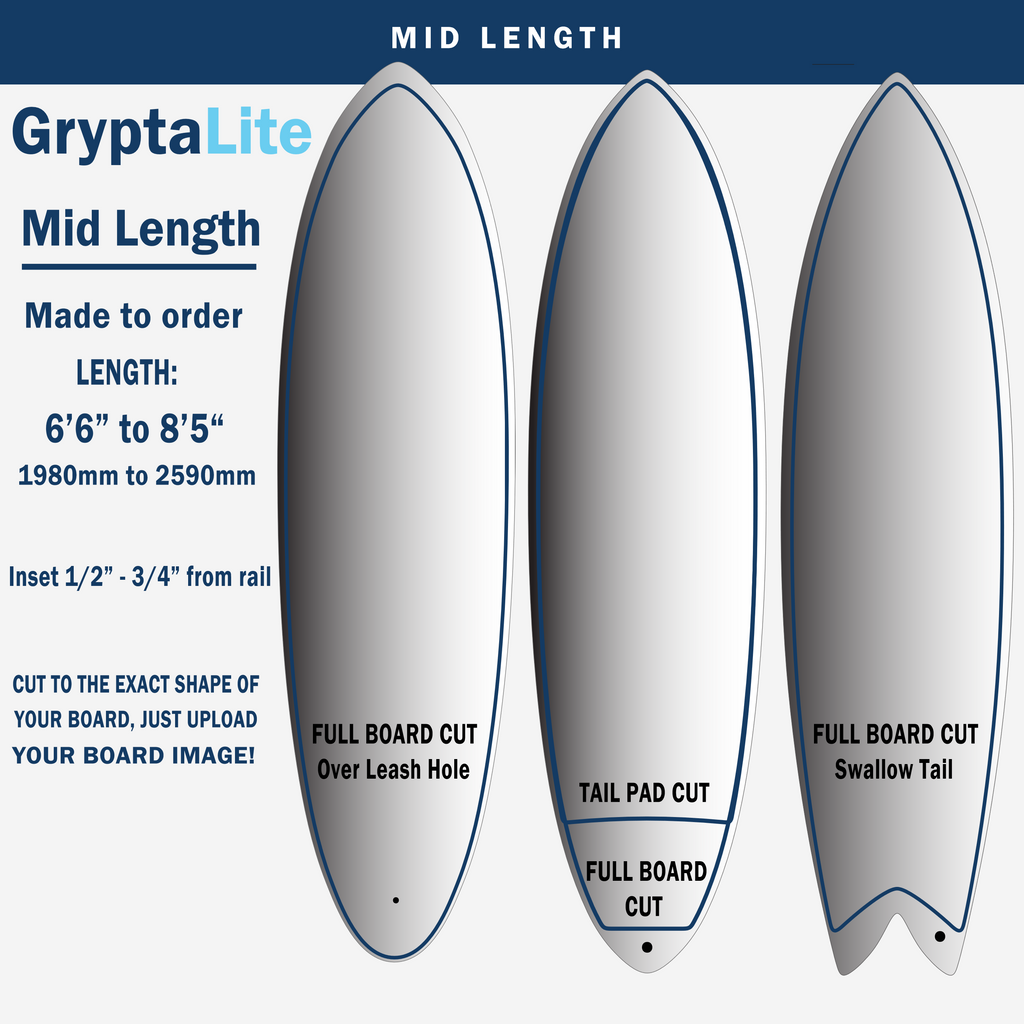 Gryptalite for Mid Length boards is intended for boards measuring 6'6" - 8'5"