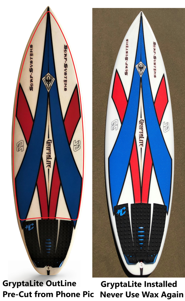 Gone are the days of heavy old melted wax and slipping off on perfect turns. GryptaLite high performance traction is engineered by surfers, for surfers, providing foot-board control you didn’t know was humanly possible. Pre-Cut 1 pc. the exact shape as your board, GryptaLite’s technology is Water Reactive Traction (super grippy when wet), totally transparent, lighter than wax at 1/3 mm thin and performs perfectly in cold and warm water. Clear, Clean and Fast. Once and Done Right- Excellent Traction every surf, for the life of your board and ocean. Made in USA.