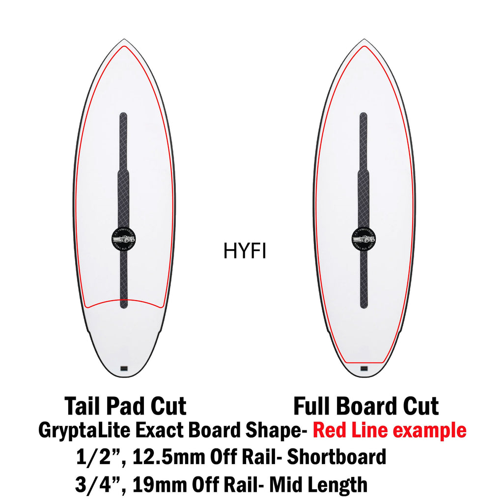 GryptaLite high performance traction has been engineered by surfers, for surfers, providing foot-board control you didn’t know was humanly possible.  No more melted dirty, slippery heavy wax build up.  GryptaLite’s technology is Water Reactive Traction (super grippy when wet), totally transparent, lighter than wax at 1/3 mm thin and performs perfectly in cold and warm water. Clear, Clean and Fast. Once and Done Right- Excellent Traction every surf, for the life of your board and clean ocean health.  Made in USA.