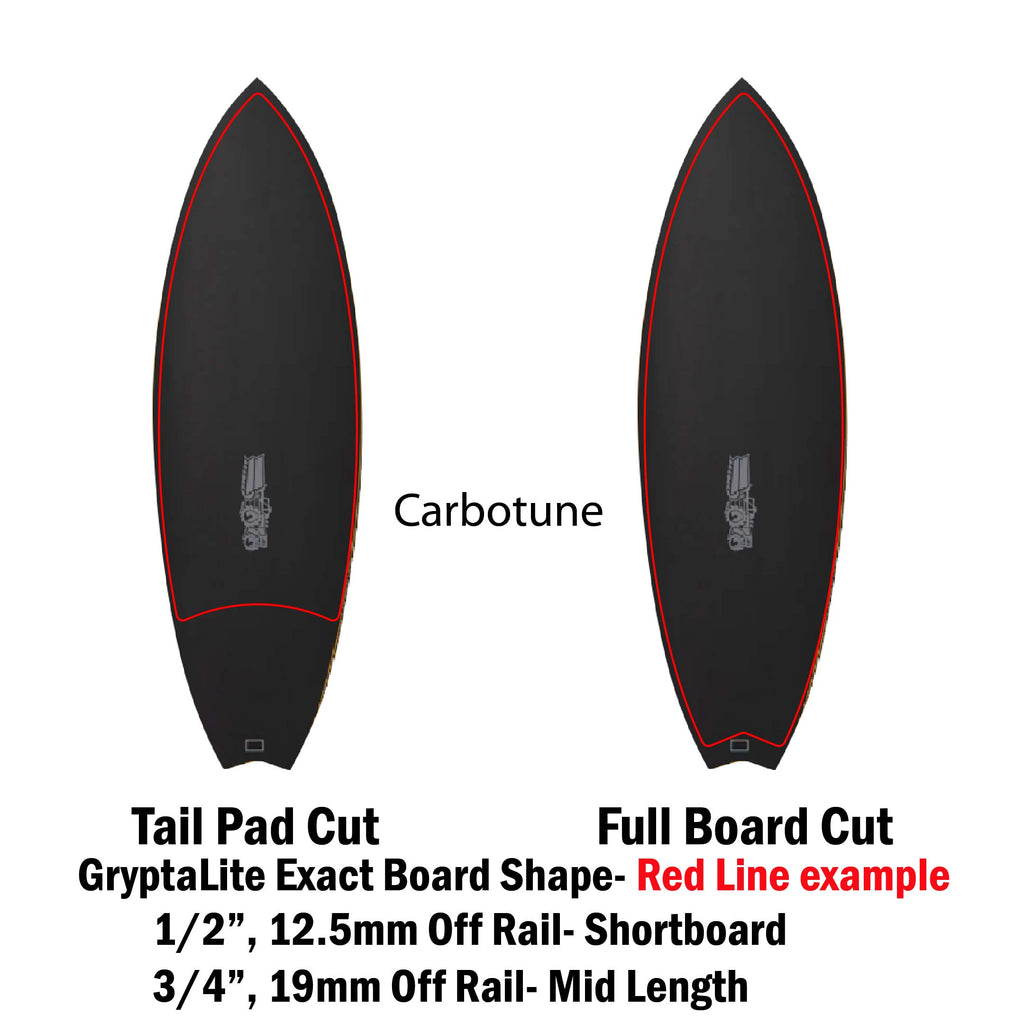 GryptaLite high performance traction has been engineered by surfers, for surfers, providing foot-board control you didn’t know was humanly possible.  No more melted dirty, slippery heavy wax build up.  GryptaLite’s technology is Water Reactive Traction (super grippy when wet), totally transparent, lighter than wax at 1/3 mm thin and performs perfectly in cold and warm water. Clear, Clean and Fast. Once and Done Right- Excellent Traction every surf, for the life of your board and clean ocean health.  Made in USA.