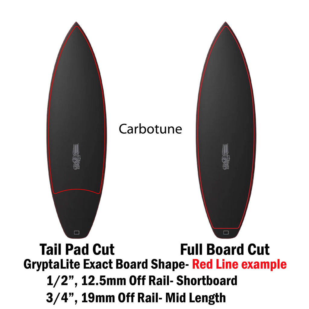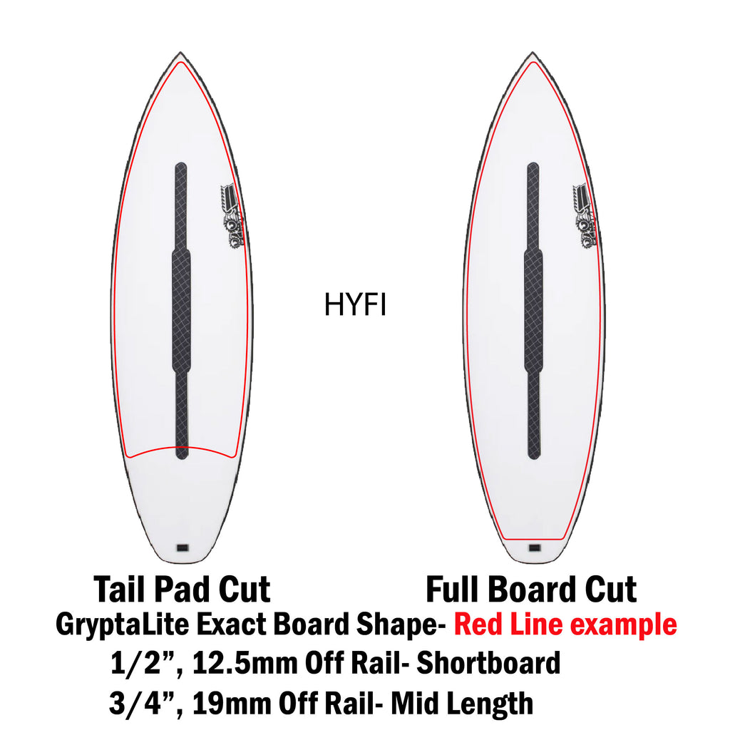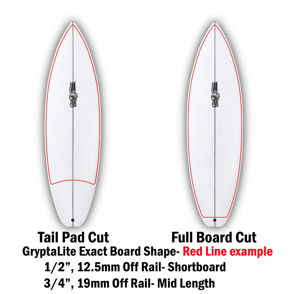 GryptaLite high performance traction has been engineered by surfers, for surfers, providing foot-board control you didn’t know was humanly possible.  No more melted dirty, slippery heavy wax build up.  GryptaLite’s technology is Water Reactive Traction (super grippy when wet), totally transparent, lighter than wax at 1/3 mm thin and performs perfectly in cold and warm water. Clear, Clean and Fast. Once and Done Right- Excellent Traction every surf, for the life of your board and clean ocean health.  Made in USA.