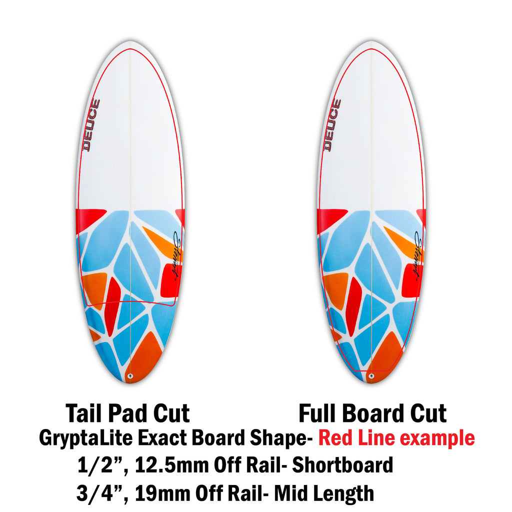 GryptaLite high performance traction has been engineered by surfers, for surfers, providing foot-board control you didn’t know was humanly possible.  No more melted dirty, slippery heavy wax build up.  GryptaLite’s technology is Water Reactive Traction (super grippy when wet), totally transparent, lighter than wax at 1/3 mm thin and performs perfectly in cold and warm water. Clear, Clean and Fast. Once and Done Right- Excellent Traction every surf, for the life of your board and clean ocean health.  Made in USA.