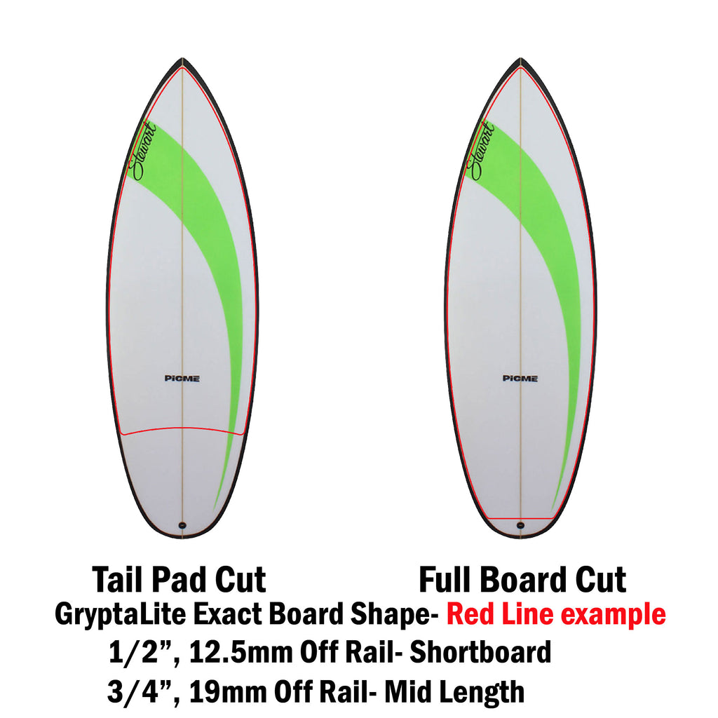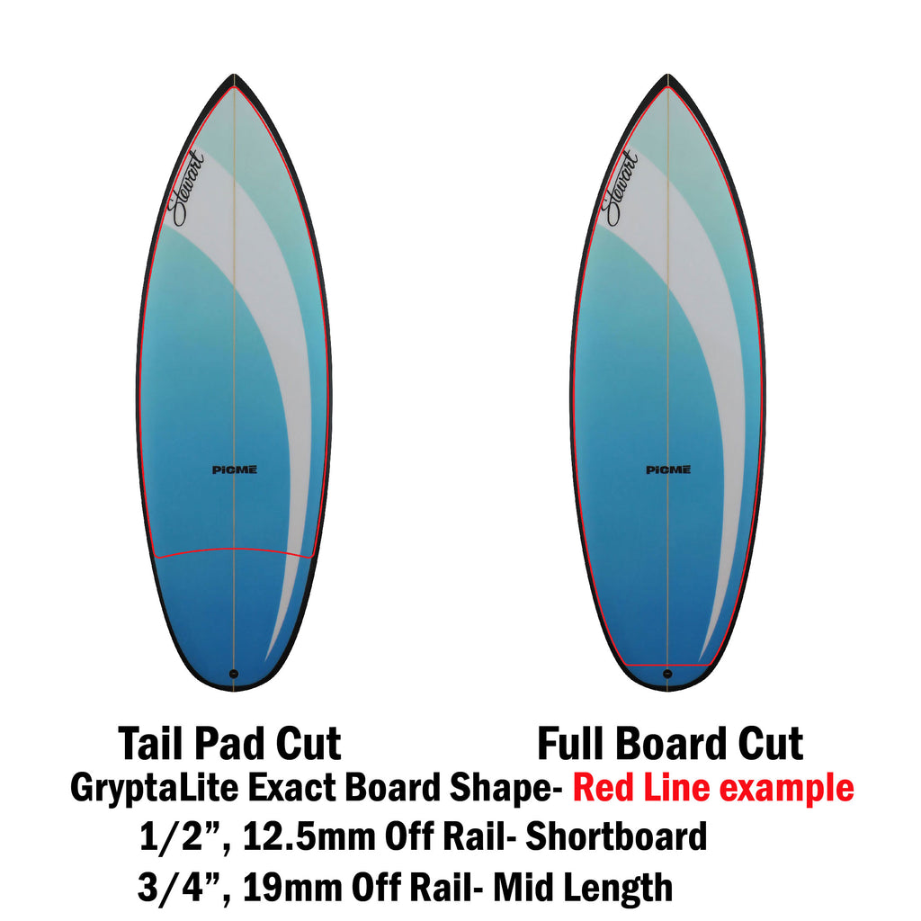 GryptaLite high performance traction has been engineered by surfers, for surfers, providing foot-board control you didn’t know was humanly possible.  No more melted dirty, slippery heavy wax build up.  GryptaLite’s technology is Water Reactive Traction (super grippy when wet), totally transparent, lighter than wax at 1/3 mm thin and performs perfectly in cold and warm water. Clear, Clean and Fast. Once and Done Right- Excellent Traction every surf, for the life of your board and clean ocean health.  Made in USA.