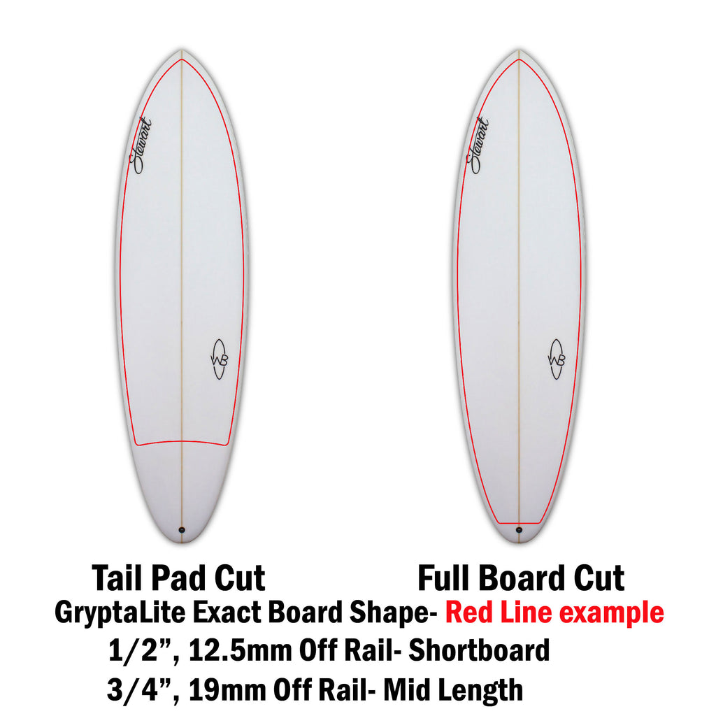 GryptaLite high performance traction has been engineered by surfers, for surfers, providing foot-board control you didn’t know was humanly possible.  No more melted dirty, slippery heavy wax build up.  GryptaLite’s technology is Water Reactive Traction (super grippy when wet), totally transparent, lighter than wax at 1/3 mm thin and performs perfectly in cold and warm water. Clear, Clean and Fast. Once and Done Right- Excellent Traction every surf, for the life of your board and clean ocean health.  Made in USA.