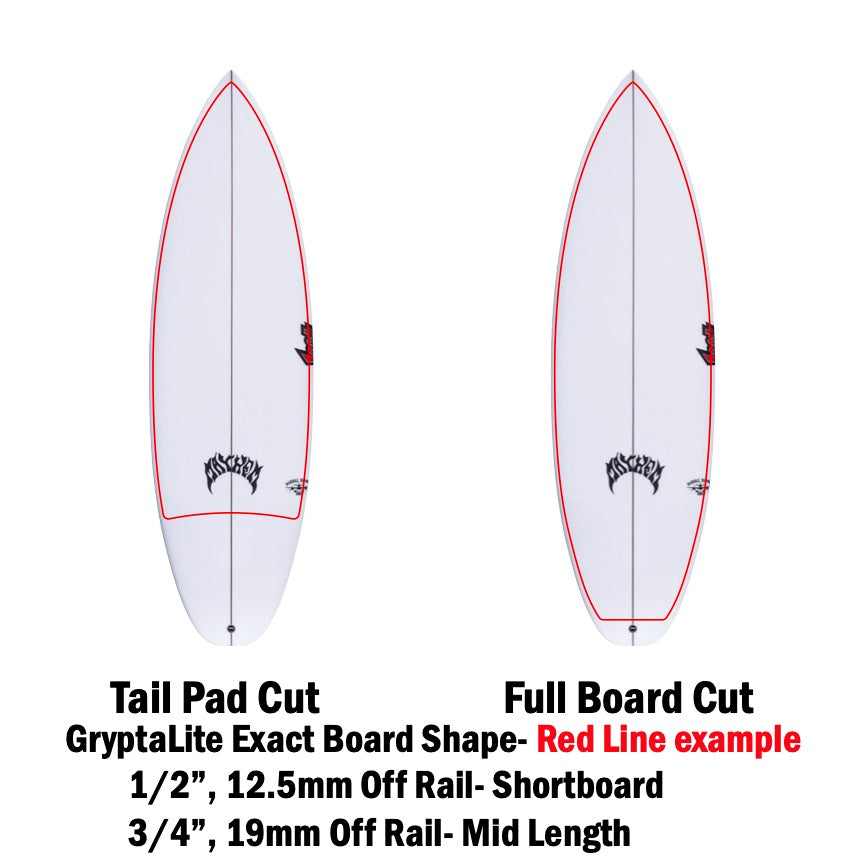 GryptaLite high performance traction has been engineered by surfers, for surfers, providing an exact board shape fit and foot-board control you didn’t know was humanly possible. No more melted dirty, slippery heavy wax build up. GryptaLite’s technology is Water Reactive Traction (super grippy when wet), totally transparent, soft, lighter than wax at 1/3 mm thin and performs perfectly in cold and warm water. Clear, Clean and Fast. Once and Done Right- Excellent Traction every surf, for the life of your board and clean ocean health. Made in USA.